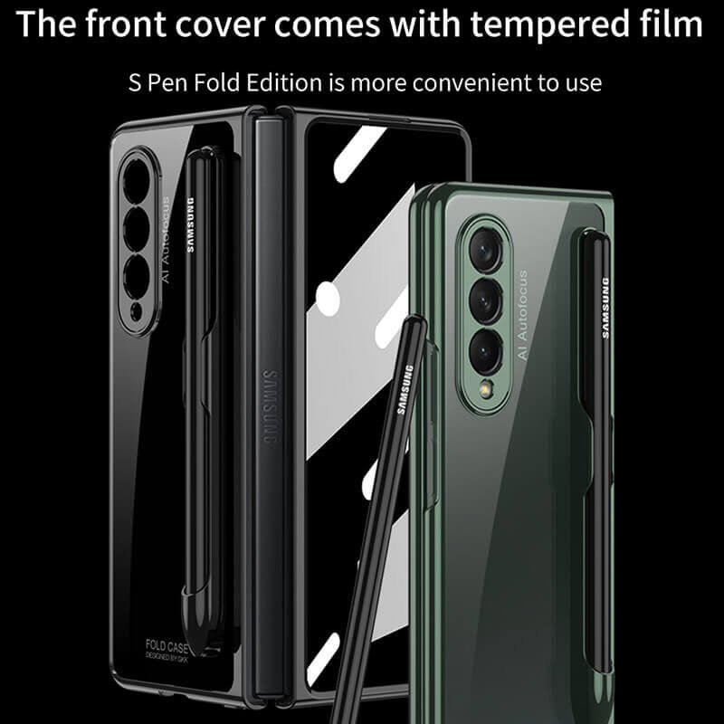 Newest Clear Phantom Tempered Glass with Pen Slot Shockproof Phone Case For Samsung Galaxy Z Fold 3 5G