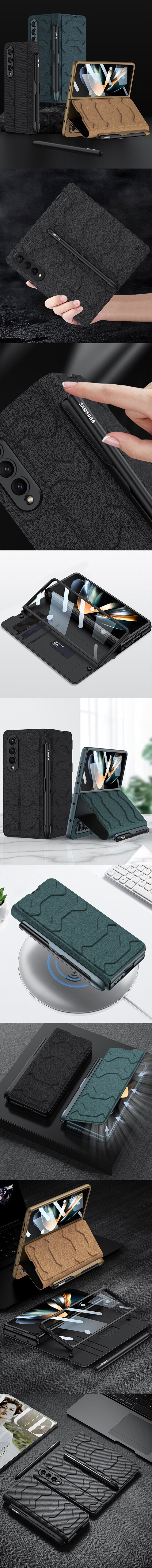 Leather Pen Holder Armor Case with Screen Protector For Samsung Galaxy Z Fold 4 5G
